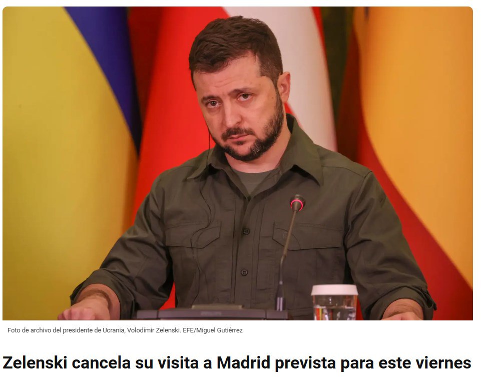 Об этом пишет испанское агентство EFE со ссылкой на источники. Заявляется, что отмена связана со "сложной ситуацией, которую переживает его страна перед лицом российского наступления".