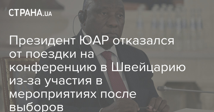 Президент ЮАР отказался от поездки на конференцию в Швейцарию из-за участия в мероприятиях после выборов