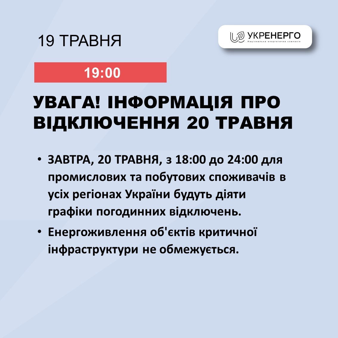 19:26 Завтра в Украину возвращаются повсеместные отключения света.