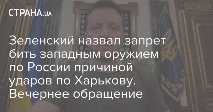 Зеленский назвал запрет бить западным оружием по России причиной ударов по Харькову. Вечернее обращение