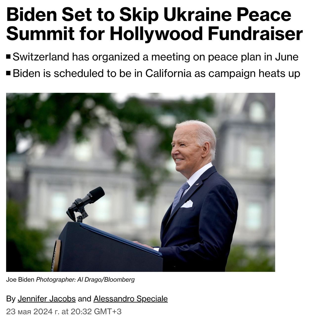 Байден может пропустить мирный саммит по Украине в Швейцарии - Bloomberg