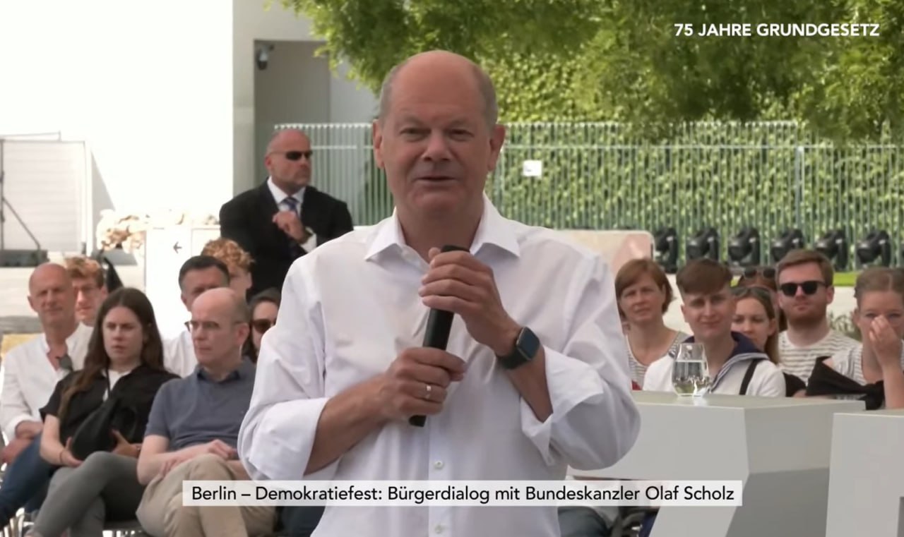 Олаф Шольц встретился с избирателями в Берлине. Скриншот видео