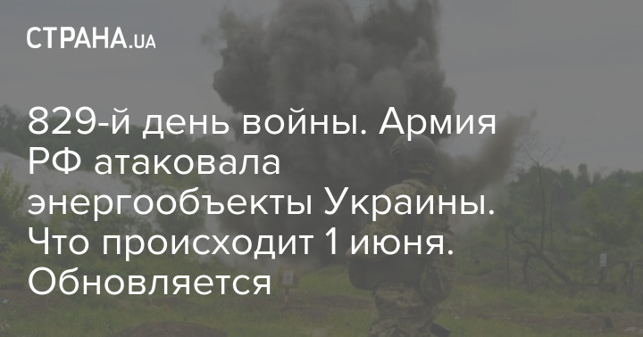 В субботу, 1 июня, в Украине идет 829-й день войны с Россией.