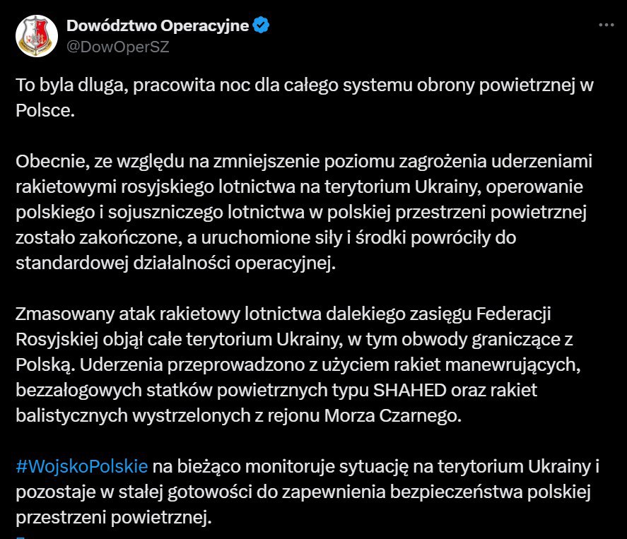 10:57 "Это была долгая и напряженная ночь для всей системы ПВО Польши", - заявили в польской армии по итогам ракетной атаки в Украине.