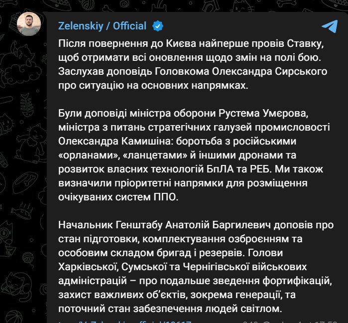 18:59 Зеленский вернулся в Киев и провел Ставку.