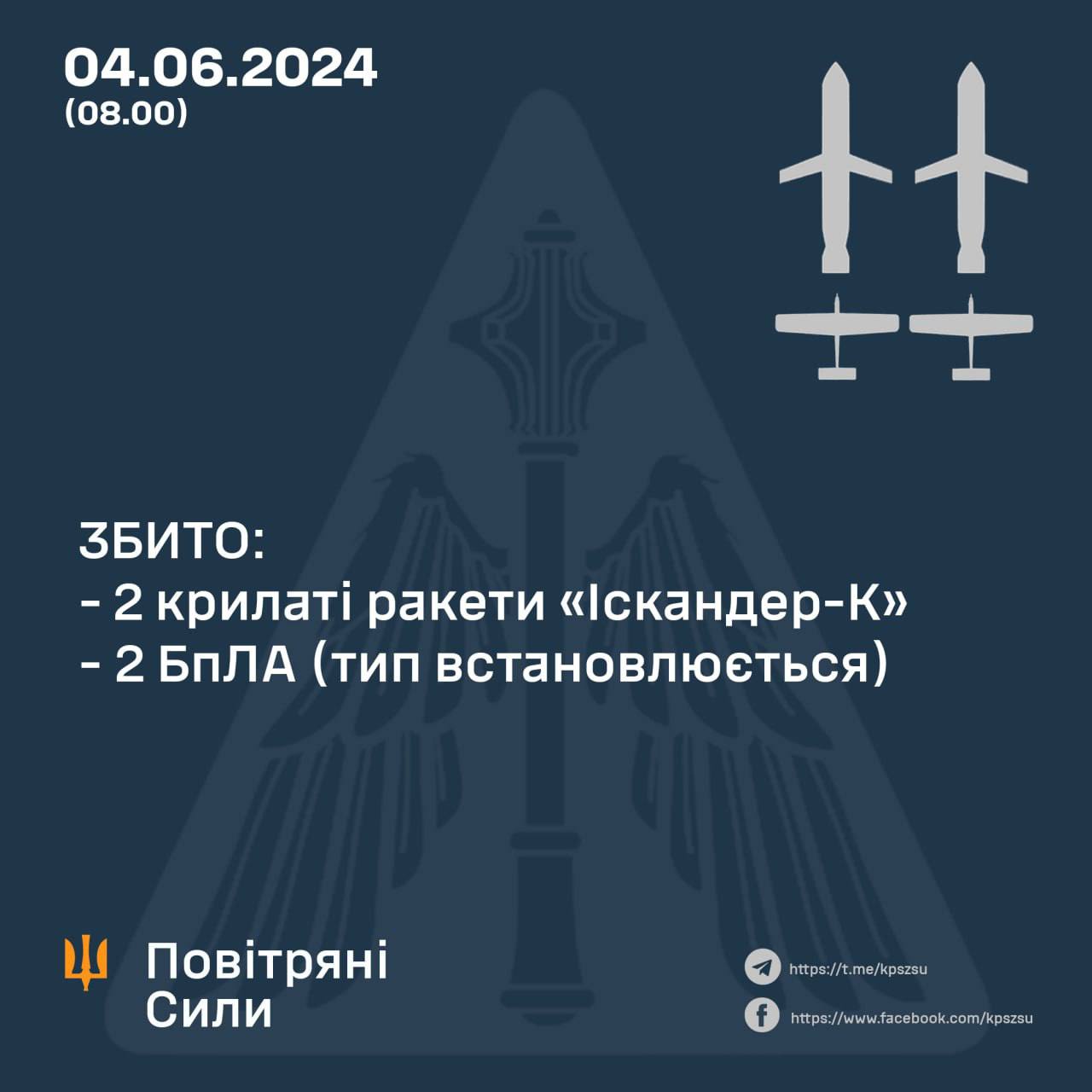 08:28 Удар по Днепру наносили две ракеты "Искандер-К", выпущенные из Крыма, сообщают Воздушные силы.