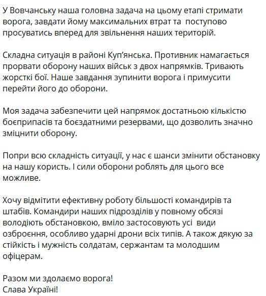 Об этом главком написал в своем телеграм-канале.