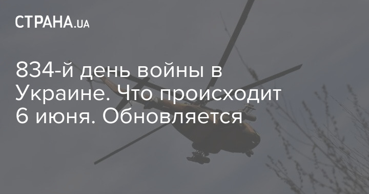 В четверг, 6 июня, в Украине идет 834-й день войны с Россией.