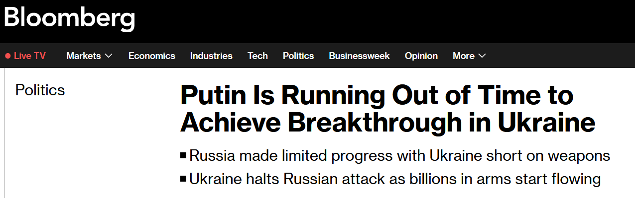 У России заканчивается время для прорыва на поле боя в Украине - Bloomberg