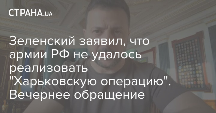 Президент Украины Владимир Зеленский заявил, что "российской армии не удалось реализовать их Харьковскую операцию".