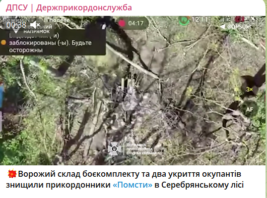 15:53 Пограничники уничтожили склад боеприпасов и два укрытия российских оккупантов Серебрянском лесу.