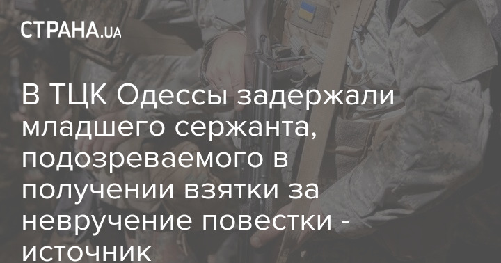 В Киевском ТЦК Одессы вчера был задержан младший сержант Макарский, подозреваемый в получении трех тысяч долларов взятки за невручение повестки.