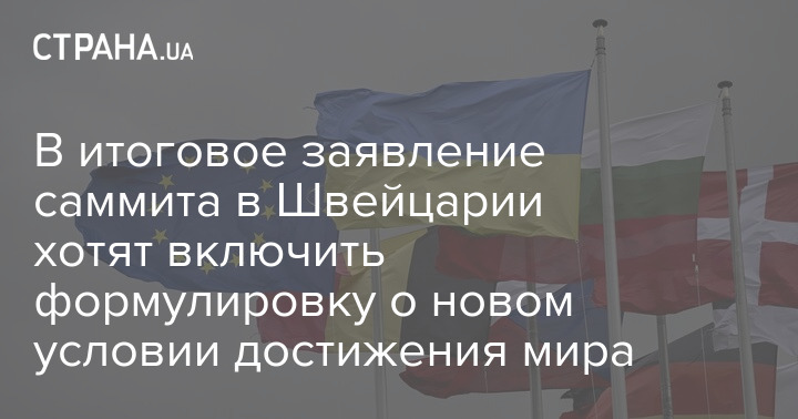 В совместном заявлении по итогам мирного саммита в Швейцарии предлагается указать, что в процессе достижения мира в Украине должны участвовать все стороны.
