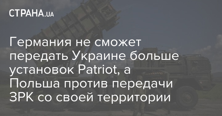 Германия не сможет передать Украине больше установок Patriot, а Польша против передачи ЗРК со своей территории