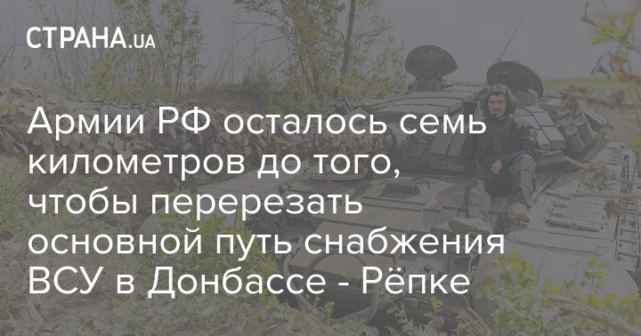Армии РФ осталось семь километров до того, чтобы перерезать основной путь снабжения ВСУ в Донбассе - Рёпке
