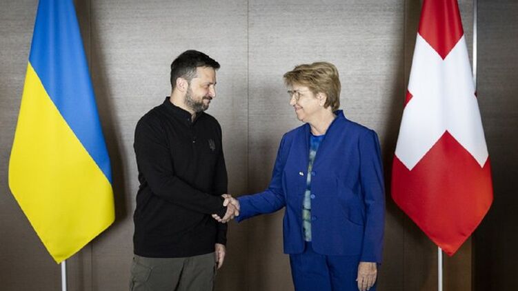 Президент Украины Владимир Зеленский с президентом Швейцарии Виолой Амхерд. Фото: Х