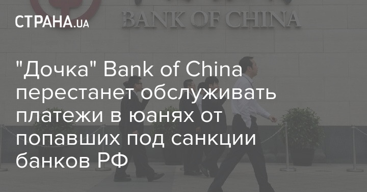"Дочка" Bank of China перестанет обслуживать платежи в юанях от попавших под санкции банков РФ