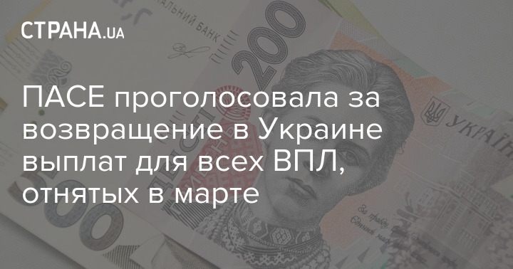 Парламентская ассамблея Совета Европы (ПАСЕ) проголосовала за резолюцию, призывающую правительство Украины вернуть выплаты всем внутренним переселенцам.