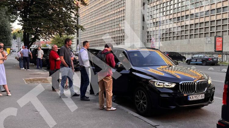 Сам Тимошенко сидел в машине на заднем сиденье, не выходил на улицу, но в итоге все же вышел к журналистам и сообщил, что следователи НАБУ попросили предоставить им его телефон.