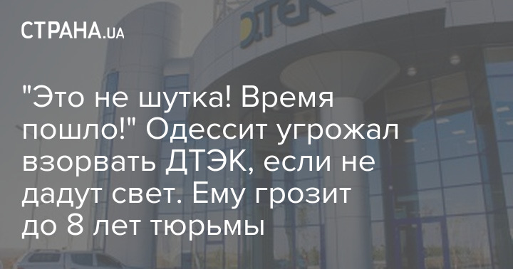 "Это не шутка! Время пошло!" Одессит угрожал взорвать ДТЭК, если не дадут свет. Ему грозит до 8 лет тюрьмы
