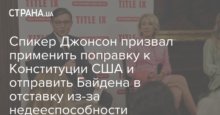 Спикер Джонсон призвал применить поправку к Конституции США и отправить Байдена в отставку из-за недееспособности
