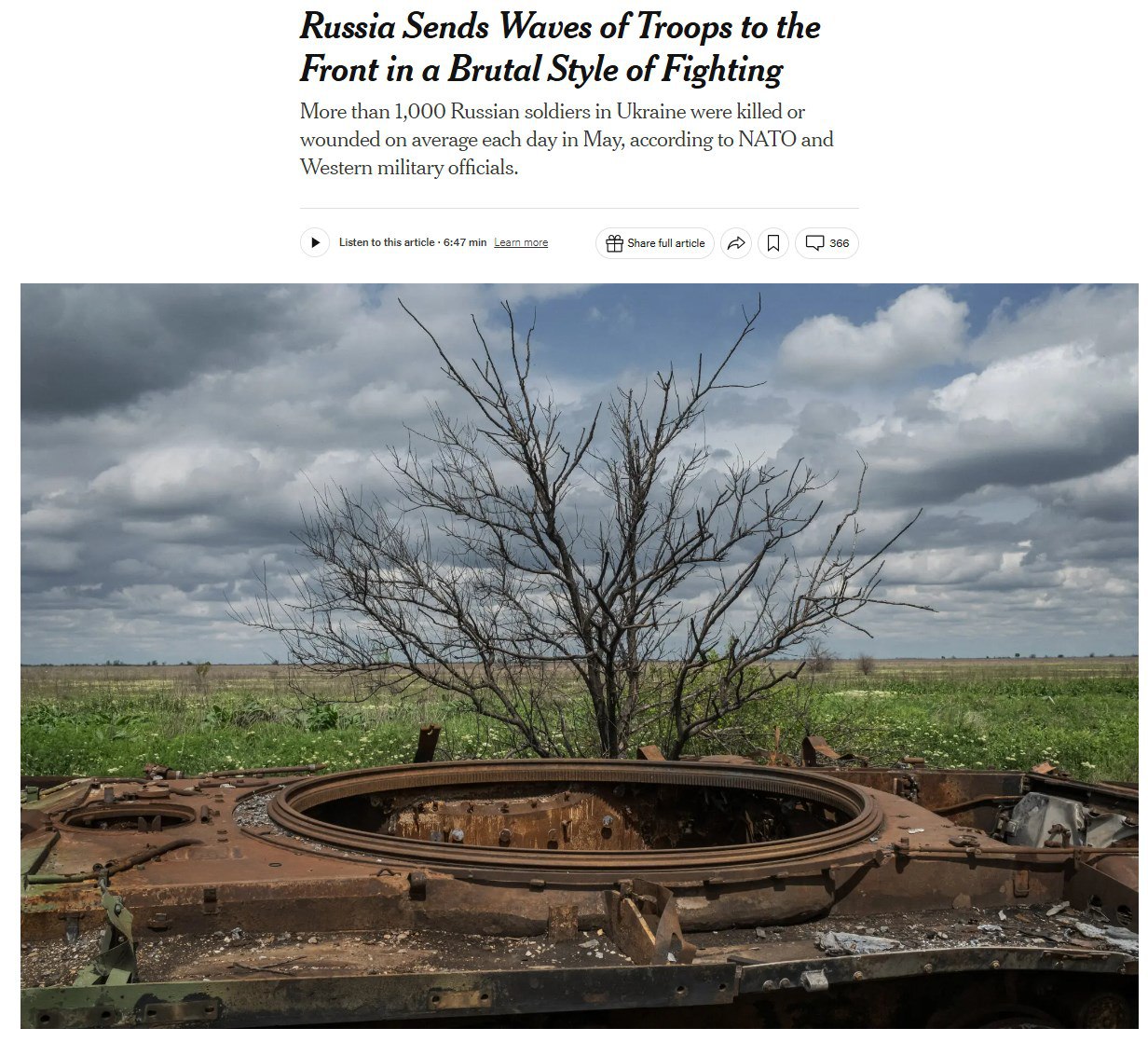 Это позволяет компенсировать примерно аналогичные потери, которые в мае составляли примерно по тысяче человек в день убитыми и ранеными.
