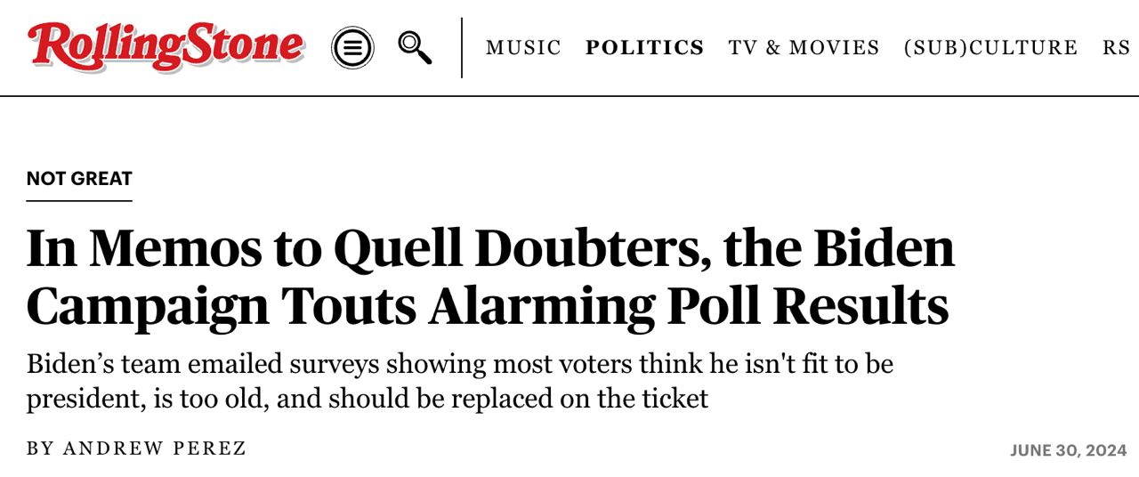 При этом опросы Белого дома демонстрируют, что большинство избирателей не хотят Байдена на второй срок из-за возраста и считают необходимой его замену.