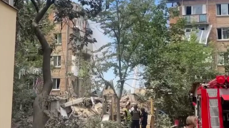 В Киеве обрушился подъезд жилого дома. Очевидец сообщает о криках детей под завалами. Видео
