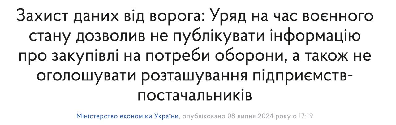 "Закупки заказчиков для неотложных оборонных нужд за счет местных и других публичных бюджетов будут проводиться без применения открытых торгов или электронного каталога. Такие договоры будут обнародованы в электронной системе закупок через 90 дней со дня прекращения или отмены правового режима военного положения", – рассказала заместитель министра экономики Надежда Бигун.
