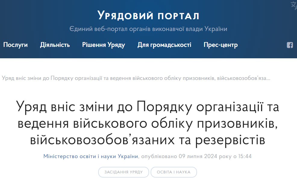 "Изменения откладывают представление военно-учетных документов лиц, проживающих только на временно оккупированных территориях, а также лиц, которые с этих территорий и территорий активных боевых действий выехали за границу", – говорится в сообщении.