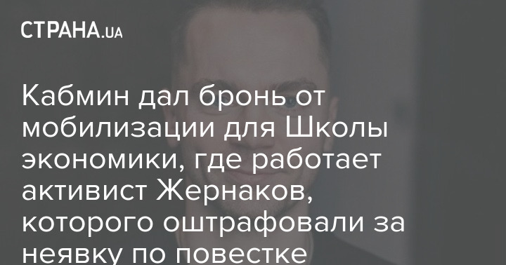 Кабмин дал бронь от мобилизации для Школы экономики, где работает активист Жернаков, которого оштрафовали за неявку по повестке