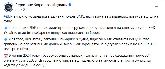 Об этом сообщается в Фейсбуке Государственного бюро расследований.