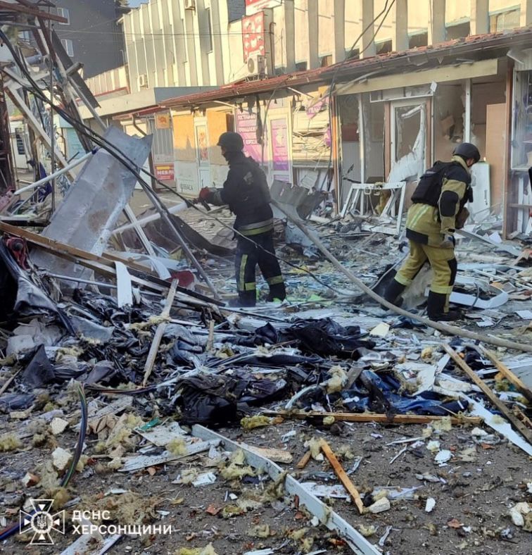 13.20 Последствия обстрела центра Херсона. Пострадали торговые киоски.