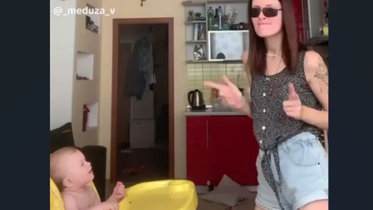 Во время отключений света украинки развлекают своих детей. Скриншот видео