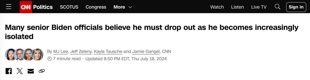 Напомним, издание Axios сообщало о возможном снятии Байдена с выборов уже в эти выходные.