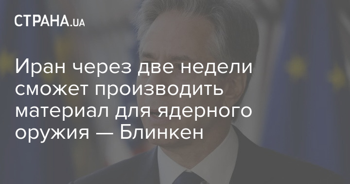 Госсекретарь США Энтони Блинкен заявил, что Иран "в течение пары недель" способен произвести расщепляемый материал для применения его в ядерном оружии.