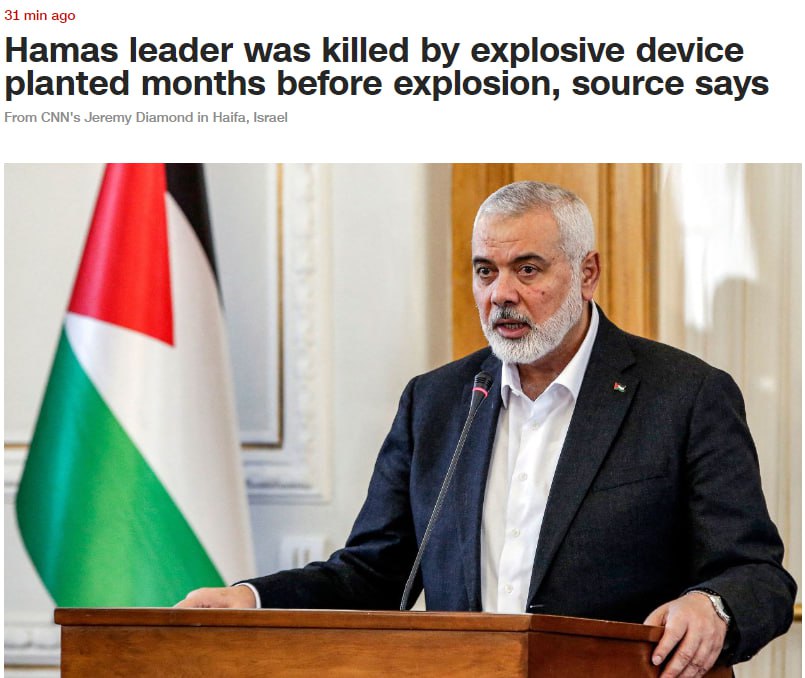 Политический лидер ХАМАС был убит не ракетой, а заложенной заранее бомбой - американские СМИ