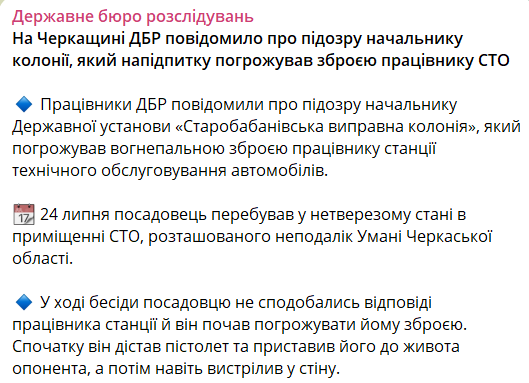 Об этом сообщает пресс-служба Государственного бюро расследований (ГБР).