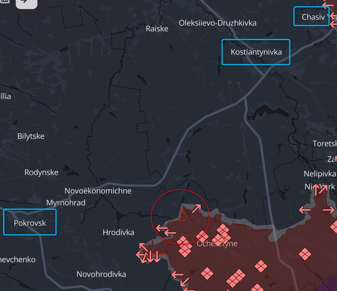 Издание отмечает, что бои к востоку от Покровска ужесточились, а россияне захватили еще три села на этом направлении - Прогресс, Евгеньевка и Волчье.