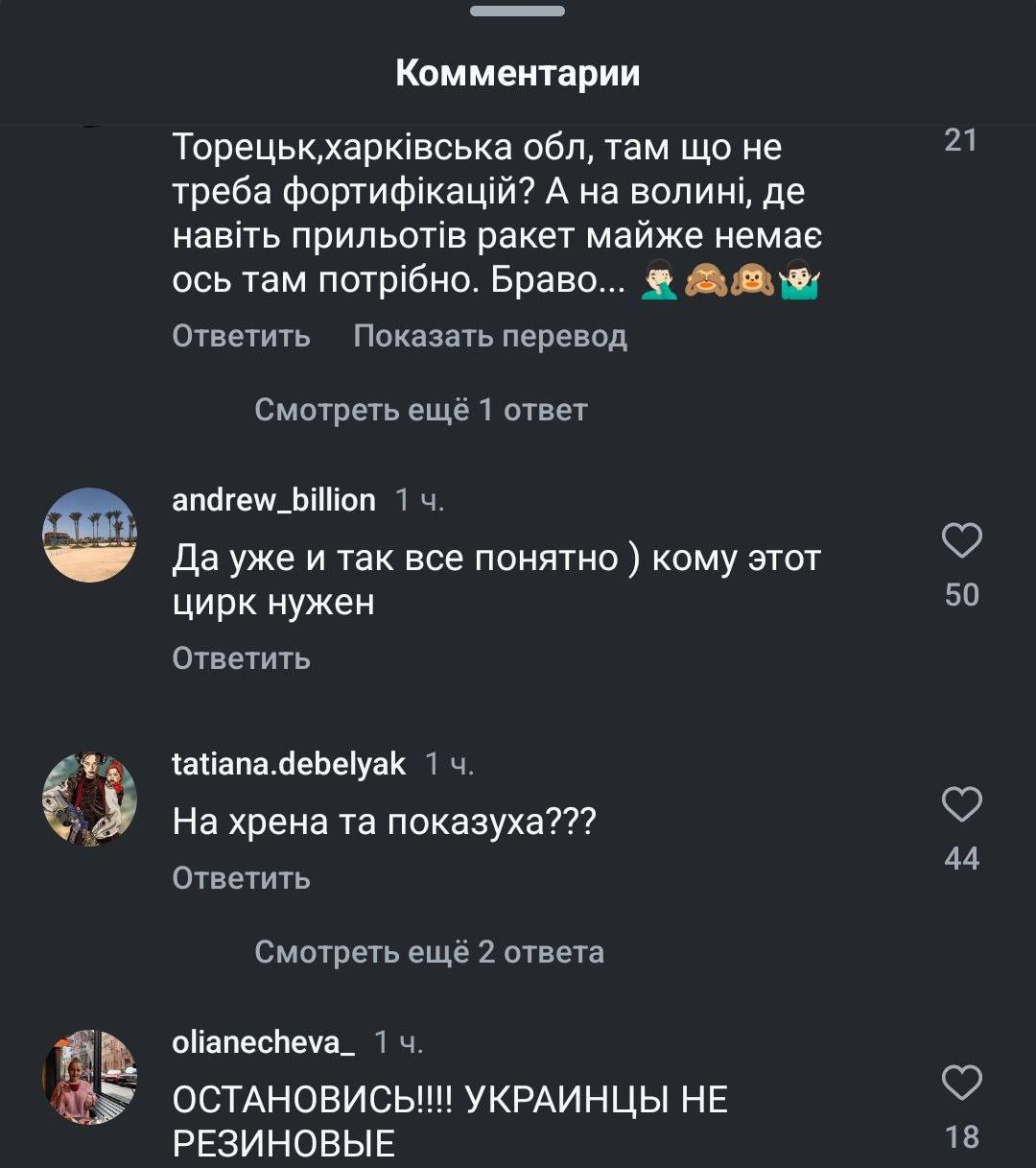 Под постом Владимира Зеленского о его поездке на Волынь, где он осмотрел строительство фортификаций и провел совещание по безопасности северных регионов Украины, появилось много комментариев с критикой.