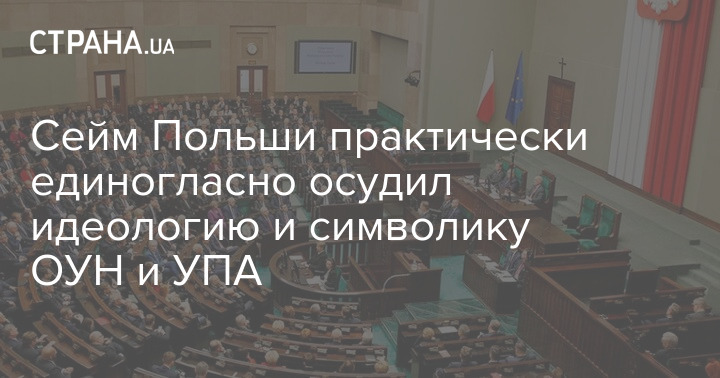 Сейм Польши осудил идеологию и символику Организации украинских националистов (ОУН) и Украинской повстанческой армии (УПА): за принятие такого решения проголосовали почти все депутаты, против не выступил никто.