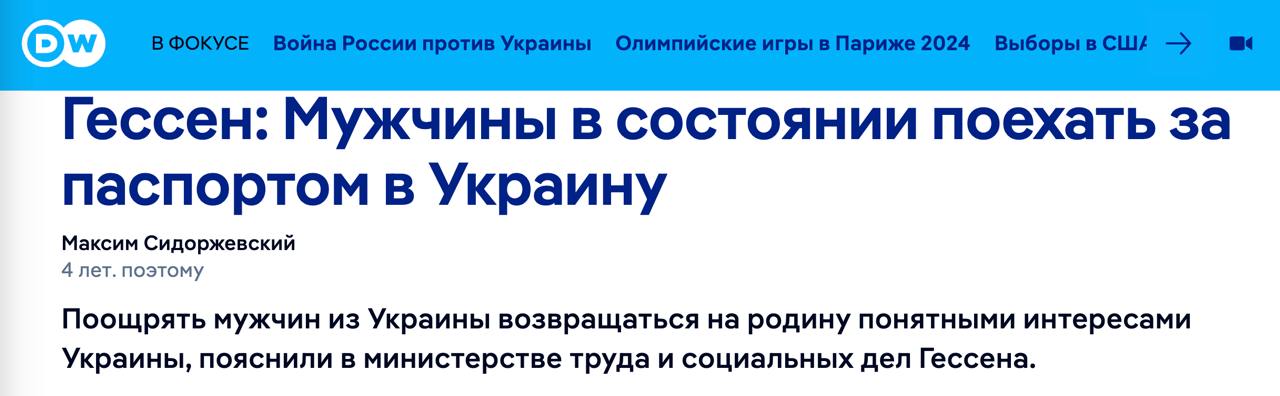 В немецкой федеральной земле Гессен не будут выдавать украинским мужчинам мобилизационного возраста немецкие аналоги загранпаспорта.