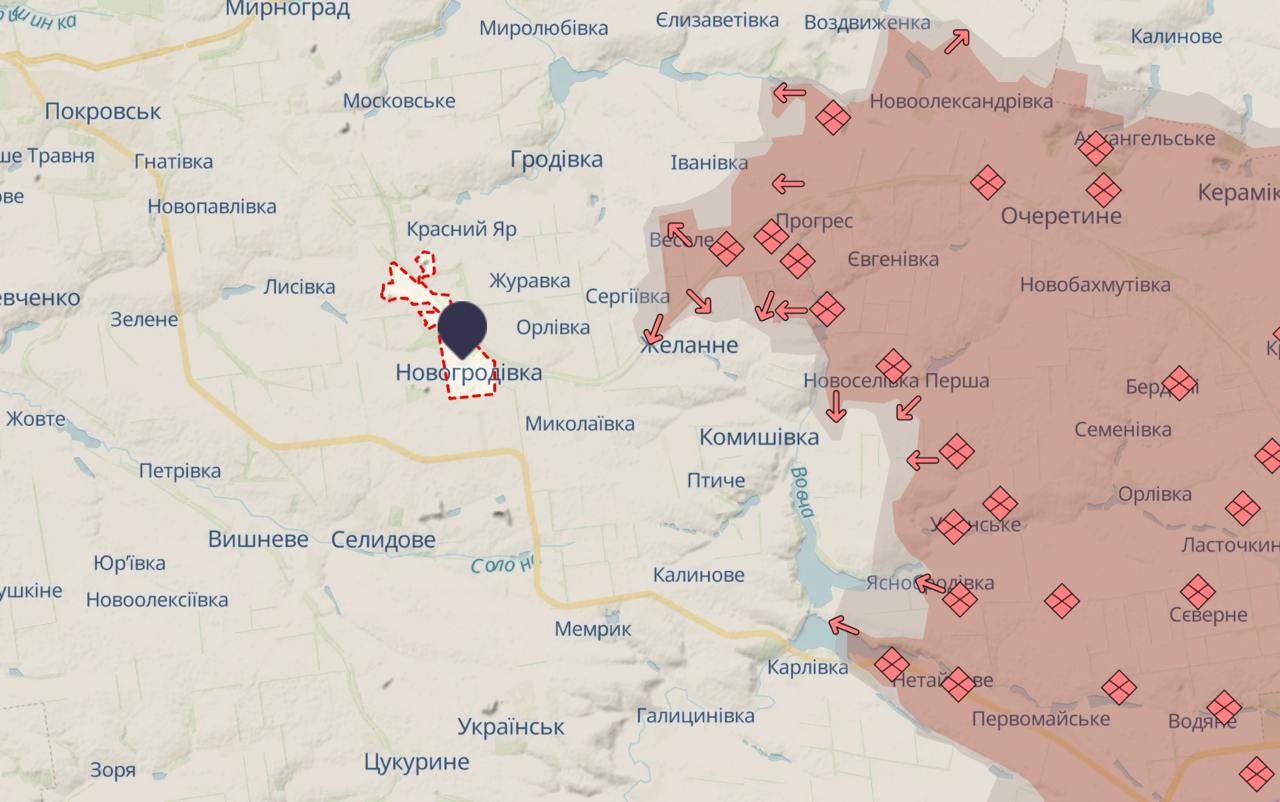 Как видно по карте, линия фронта сейчас приближается к Гродовке и Новогродовке.