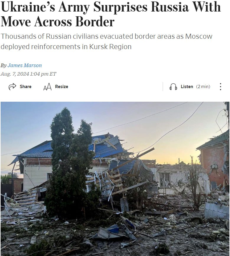 Украина заранее не проинформировала США о своем плане наступления на территорию России.