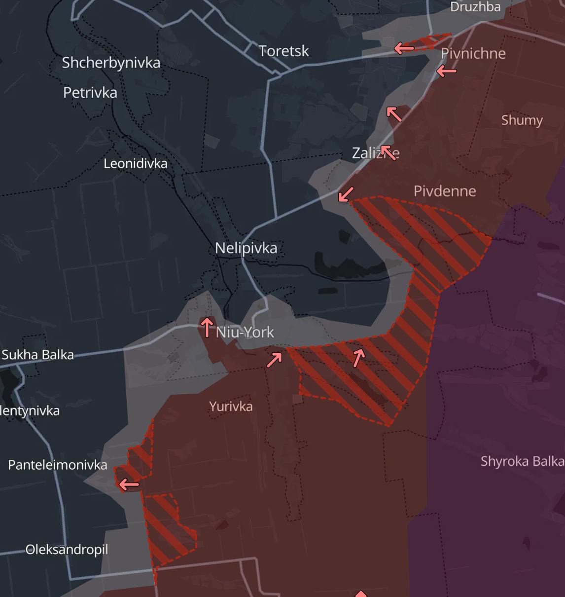 Россияне захватили территорию между Нью-Йорком и селом Южное, которая раньше уже находилась в полуокружении. До полного окружения оставалось взять село Нелиповка.