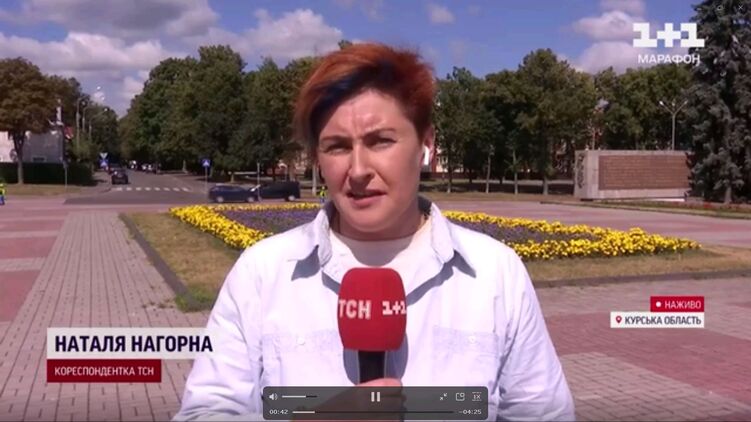 "Корреспондент ТСН Наталья Нагорная только что вернулась с Курщины", - заявил ведущий.