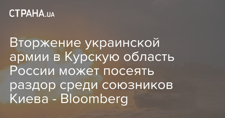 Вторжение украинской армии в Курскую область России может посеять раздор среди союзников Киева - Bloomberg