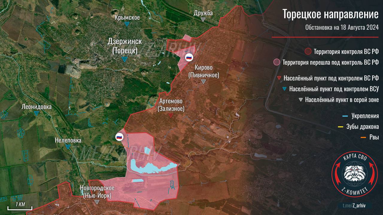 На картах, которые публикуют украинские и российские военные паблики, небольшая часть Нью-Йорка все ещё под контролем ВСУ.