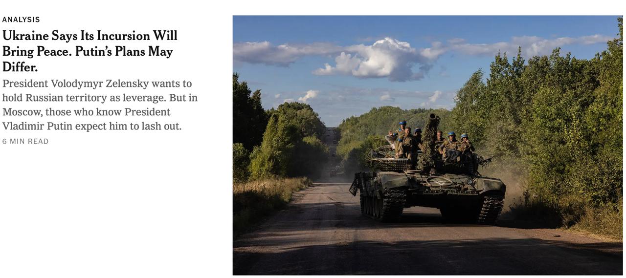 После событий под Курском переговоры сняты с повестки дня, а Путин нацелен на месть - NYT