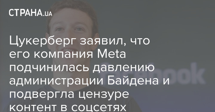 Цукерберг заявил, что его компания Meta подчинилась давлению администрации Байдена и подвергла цензуре контент в соцсетях